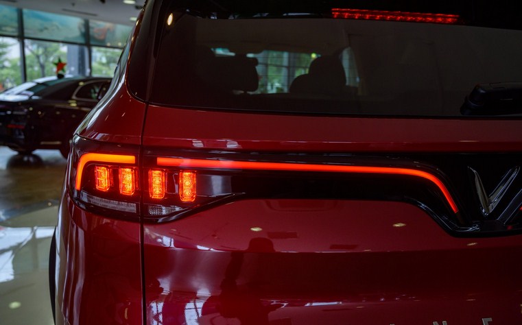 Ngoài ra, Vinfast Lux SA 2.0 cao cấp 2022 của Lux SA còn được ưu ái trang bị bộ mâm hợp kim kích thước 20 inch sơn tương phản đẹp mắt. Đuôi xe vẫn mang hai dải đèn hậu LED đặc trưng vuốt nhẹ từ phần hông sang logo Vinfast nổi bật ở trung tâm, phía dưới là các bóng LED nhỏ được chia khoang tinh xảo và đẹp mắt. Cốp xe mang một tỉ lệ khác biệt với phần kính phía sau nhỏ và khoảng đặc của cốp khá lớn, kết hợp với 2 đường gân to khỏe, khiến chiếc Vinfast Lux SA 2.0 cao cấp 2022 sở hữu một vẻ ngoài uy lực hơn bất kì một chiếc SUV phổ thông nào. Trên cốp sau còn được trang trí dòng chữ VINFAST mạ chrome sáng bóng, và phía dưới phần cản là hệ thống ống xả kép mang đậm nét thể thao.