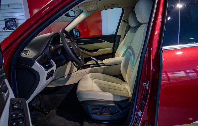 Nội thất bên trong xe Vinfast Lux SA 2.0 cao cấp 2022 mang đến vẻ đẳng cấp khi được trang bị bộ da Nappa thượng hạng với ba tùy chọn màu sắc là đen, nâu và be. Riêng với nội thất màu be, bạn sẽ sở hữu taplo ốp viền gỗ, để mang lại phối màu tổng thể hài hòa, và ốp nhôm sẽ được kèm theo trên 2 lựa chọn màu sắc còn lại. Ghế lái và ghế hành khách phía trước đều có khả năng chỉnh điện 12 hướng ( vượt trội hẳn so với khả năng chỉnh 4 hướng trên hai phiên bản thấp hơn ). Vô lăng được thiết kệ dạng ba chấu chữ V khác biệt của thương hiệu Vinfast, được bọc da bên ngoài và tích hợp các nút bấm chỉnh âm lượng, đàm thoại rảnh tay, Cruise Control tiện lợi. Hệ thống điều hòa vẫn là dạng tự động 2 vùng độc lập, với cửa gió điều hòa cho tất cả hàng ghế trên xe. Tuy nhiên, hệ thống âm thanh của Vinfast Lux SA 2.0 cao cấp 2022 đã được ưu ái nâng cấp lên 13 loa có âm ly, mang lại trải nghiệm về chất âm chân thực hơn so với Lux SA bản Base. Điều đặc biệt nhất mà chiếc SUV thương hiệu Việt này mang lại là hệ thống đèn viền nội thất – chi tiết vốn chỉ xuất hiện trên những mẫu xe sang trọng đến từ Châu Âu – và cũng chính là phần tiện ích mà hai phiên bản thấp hơn không được trang bị. Ngoài ra, cốp của Lux SA 2.0 bản Premium cũng được trang bị tính năng “đá cốp” với phần cảm biến tích hợp bên dưới đuôi xe, giúp bạn có thể dễ dàng mở xe ngay cả khi hai tay đang bận mang/xách hành lý.
